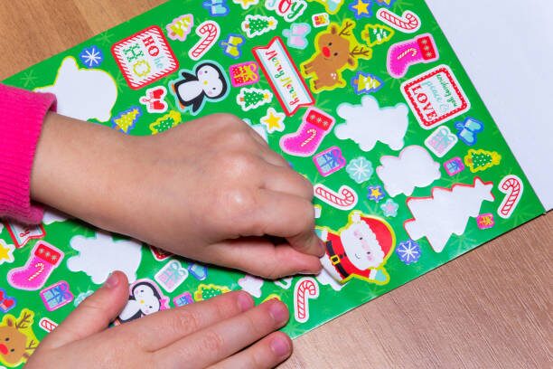 シール貼り:台紙からシールをはがして貼る動作で目と手の連携が育つ